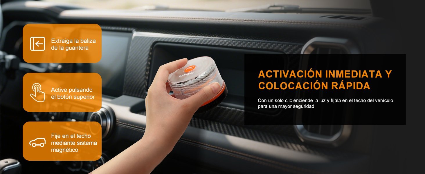 Bot¨®n de activaci¨®n muy intuitivo, luz de emergencia DGT, no falta en ning¨²n veh¨ªculo espa?ol